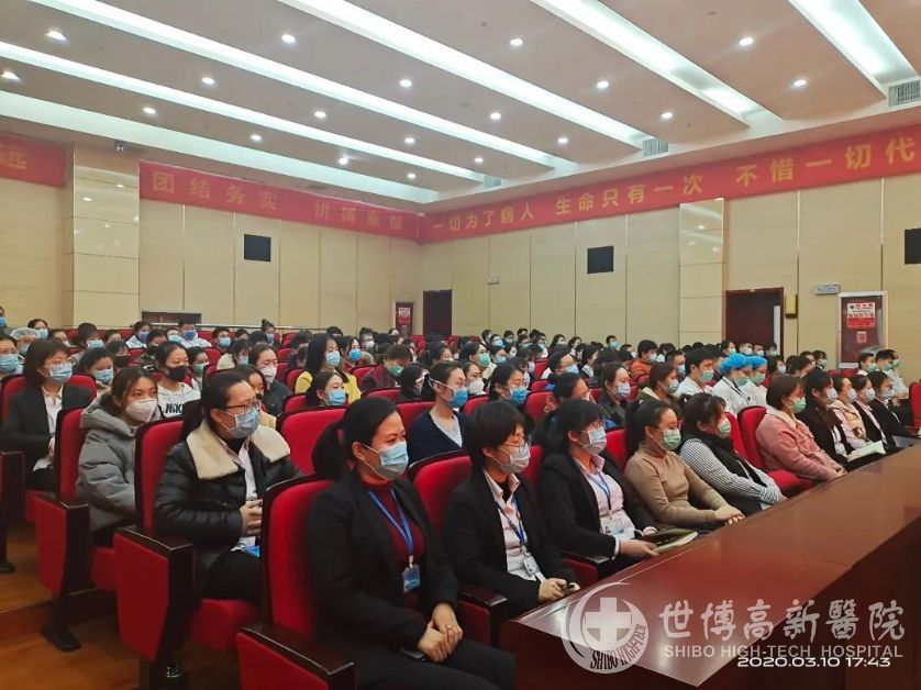 2020年3月10日,淄博世博高新医院青年工作委员会在这特殊时期开展了一场特殊的会议---抗击“新冠肺炎”向前线战士学习系列活动。中共淄博世博高新医院党总支书记阎敬武同志,参加会议并发表重要讲话,参会的世博青年工作者人数高达190人。本次会议充分发扬了标杆带动作用,在院内掀起一场“有责任有信念,逆行而上”的学习高潮。