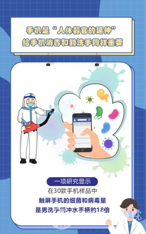 手机是“人体器官的延伸”,因此,给手机消毒和勤洗手同样重要。