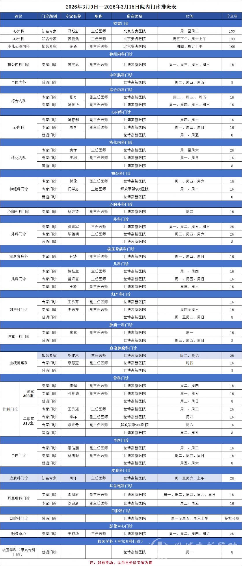 门诊安排