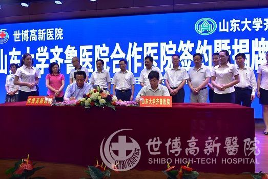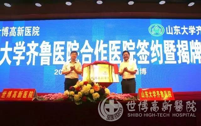 2016年8月12日,世博高新医院·山东大学齐鲁医院合作医院签约暨揭牌仪式隆重举行。世博高新医院与山东大学齐鲁医院正式成为合作医院。山东大学齐鲁医院院长李新钢先生带领院领导班子及专家出席;淄博市市委常委、副市长庄鸣,淄博市政府党组成员、高新区工委书记、管委会主任刘荣喜,淄博市卫计委主任张鲁辛等参与此次活动,北京世博金都医药科技发展有限公司董事长、世博高新医院阎敬武带领医院专家陪同。