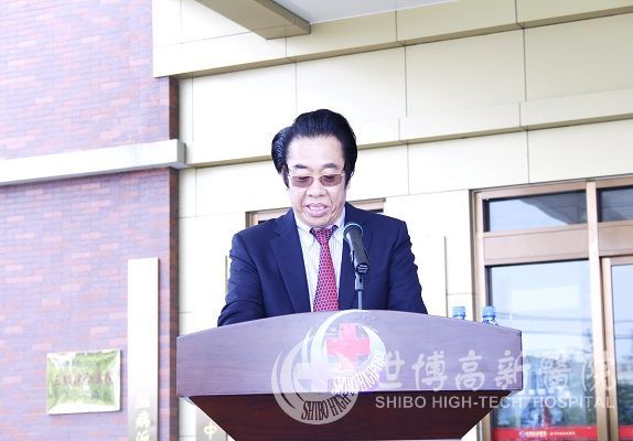 中国工程院院士 山东省肿瘤医院院长 于金明院士、淄博市人民政府副市长盖卫星、淄博市高新区工委副书记、管委会常务副主任魏玉蛟、淄博市卫计委党委书记宋晓东同志、山东省肿瘤医院副院长 王哲海、世博高新医院创始人、董事长兼院长阎敬武出席了签约揭牌仪式。阎敬武董事长、盖卫星副市长、 王哲海副院长分别致辞。