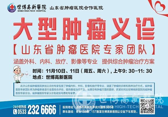 本报讯 11月10日至11日(下周五周六)上午9:30,山东省肿瘤医院专家团队将在世博高新医院举行大型肿瘤义诊。省肿瘤医院五位知名专家教授齐聚淄博,涵盖了肿瘤外科、内科、放疗、影像等专业,为患者提供综合肿瘤治疗方案。
