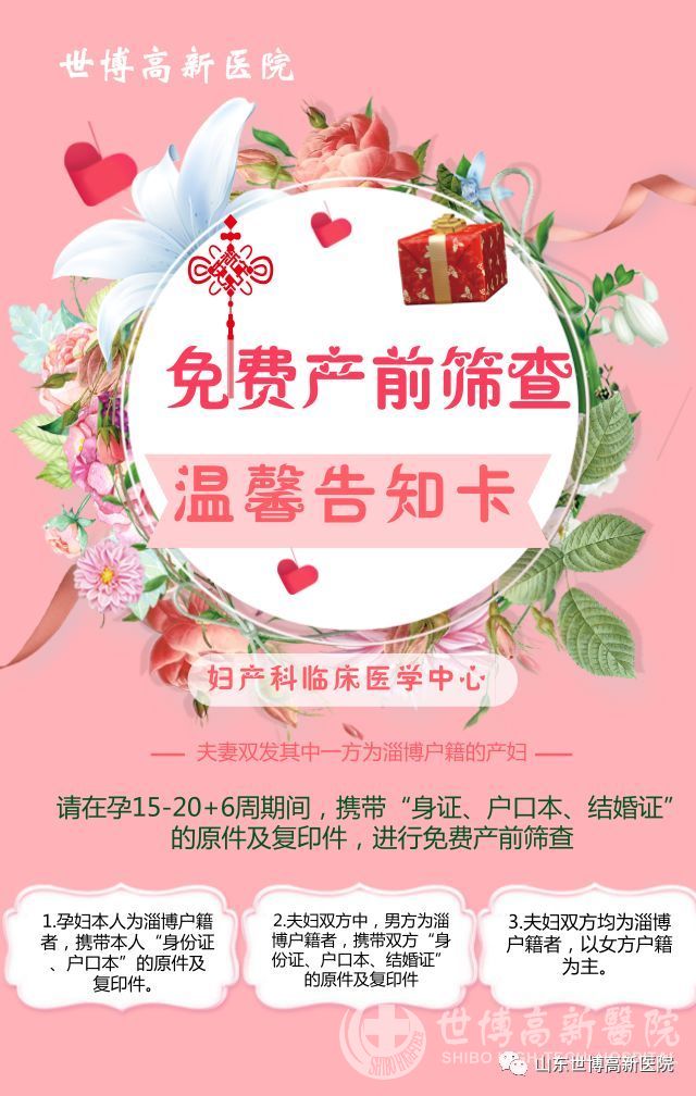 为了进一步加强出生缺陷综合防治、提高出生人口素质,依据《淄博市免费产前筛查项目工作方案》,淄博市实行孕中期免费产前筛查。