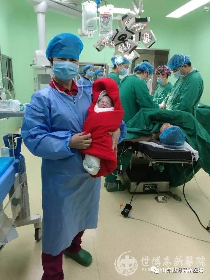 当天,山东大学齐鲁医院妇产科张树泉主任正好在世博高新医院坐诊,因此这例剖宫产手术就由齐鲁医院妇产专家进行保驾,张树泉主任亲自到产房手术室进行手术。